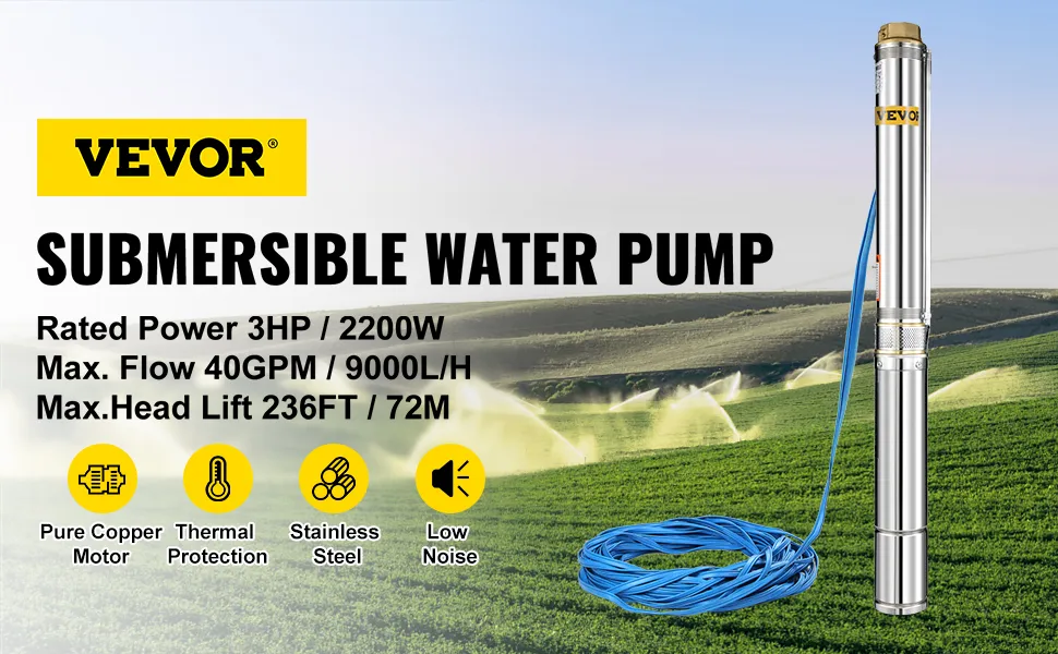 Met deze krachtige dieptepomp kunt u ook vanaf grotere diepten snel en comfortabel water geven. Deze dompelpomp, vervaardigd uit 304 roestvrij staal, is een duurzaam werkpaard dat u jarenlang in beweging houdt. De 2,2 kW diepe bronpomp biedt u een toonaangevende stroomsnelheid en produceert een consistent debiet tot een duizelingwekkende diepte van 20 meter onder het oppervlak.