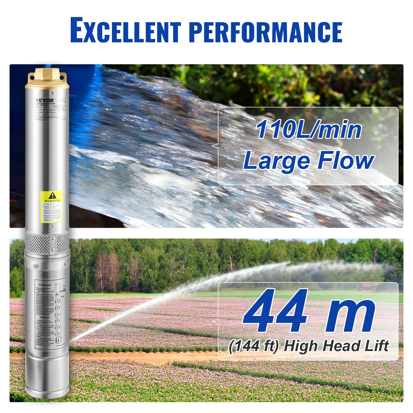 Maakt u zich zorgen over de watervoorziening van uw gezin of landbouwgrond? Nou, maak je klaar om je bron snel weer up and running te hebben! Onze diepe goed dompelpomp biedt u een groot debiet, waardoor een consistente stroming wordt geproduceerd tot een behoorlijke diepte onder het oppervlak. Premium roestvrijstalen constructie zorgt ervoor dat deze deepwell-pomp jarenlang uitstekende prestaties behoudt. Pomp het vandaag nog op en begin ten volle van het leven te genieten met onze dompelpomp. Aarzel niet om er een aan te schaffen!!!