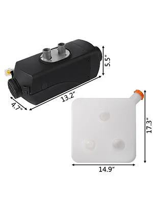 Met een compact ontwerp is de luchtverwarmingstank gemakkelijk te installeren voor binnen of zelfs onder de vloer. Door het lage brandstof- en stroomverbruik is hij geschikt voor langdurig gebruik. Het warmt snel op en helpt je snel warm te worden als het buiten koud is.