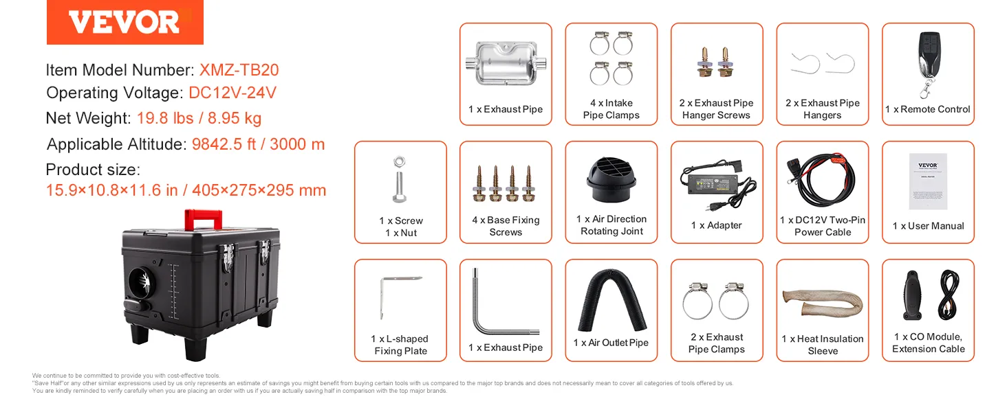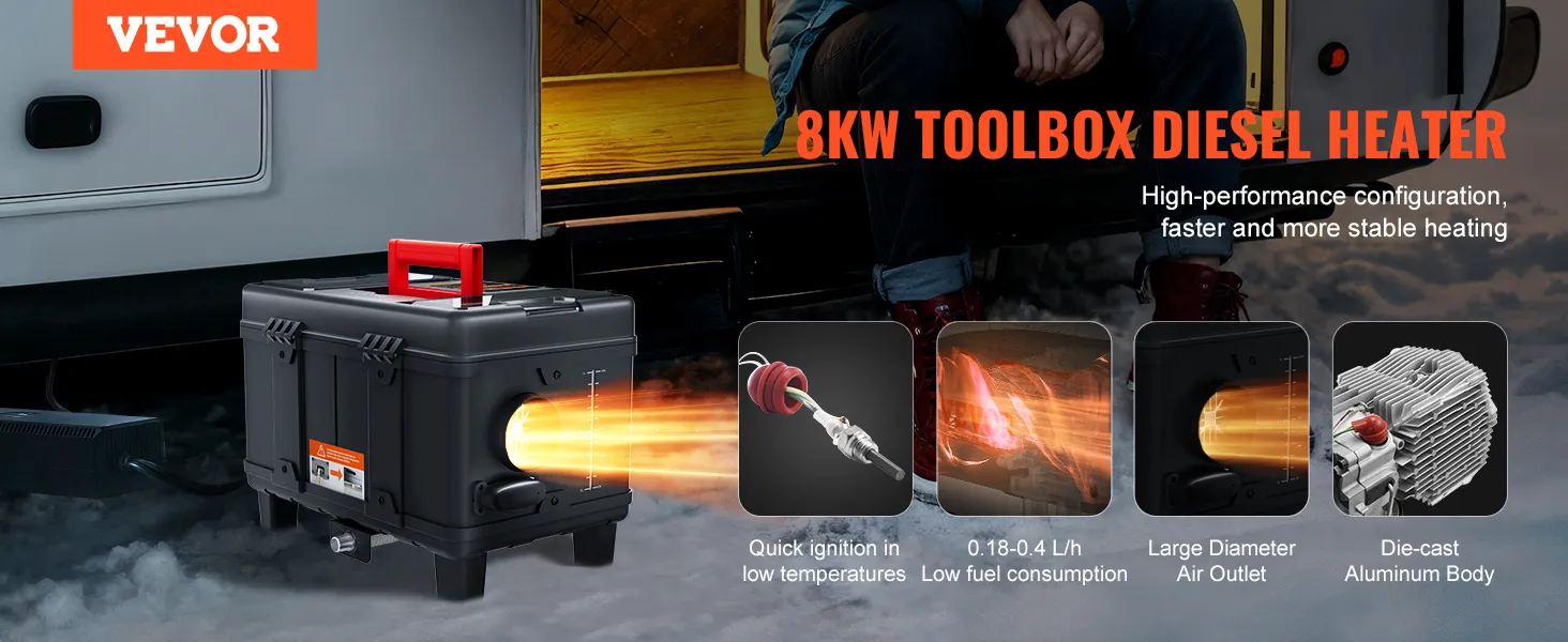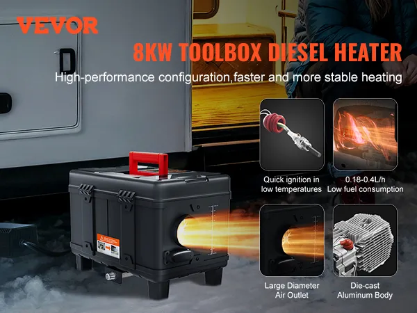 Stille werking: Deze 8 kW dieselkachel is uitgerust met een hoogwaardige geluiddemper en brandstofpomp om het geluid tot een minimum te beperken. Werking is ≤ 75 dB. Geniet van een warme, ongestoorde slaap wanneer u in een camper reist of buiten kampeert, zonder de kou.