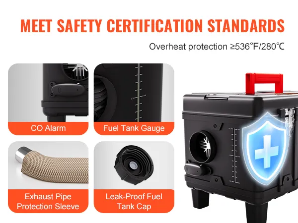 Innovatief CO-alarmsysteem: Onze dieselkachel biedt meer veiligheid met een geïntegreerd CO-alarm dat continu het CO-niveau controleert en alarm geeft of automatisch uitschakelt wanneer dat nodig is. Andere verbeteringen zijn onder meer een lekvrije tankdop, brandstofniveau-indicator en bescherming tegen oververhitting - voor gemoedsrust bij langdurig gebruik.