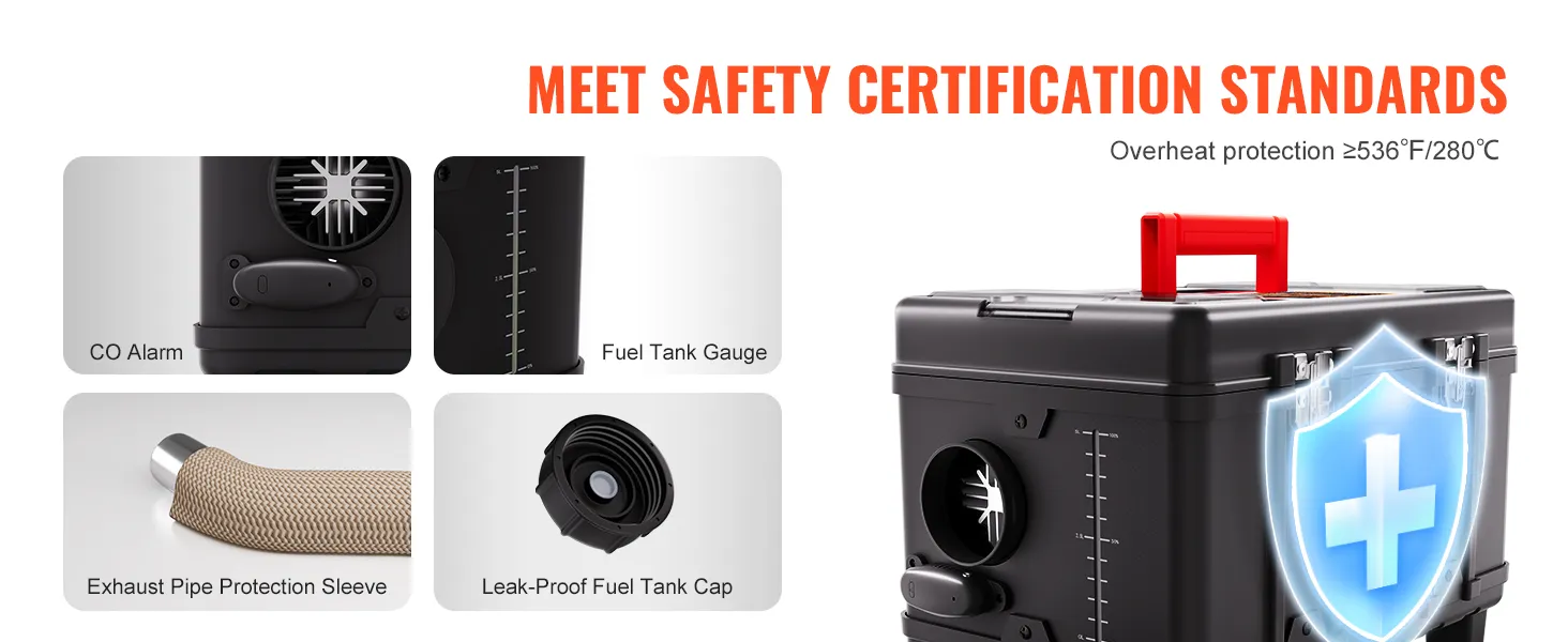 Naast bescherming tegen oververhitting beschikt deze dieselautoverwarming over een brandstofniveau-indicator en een lekvrije tankdop - allemaal verbeteringen die de veiligheid bij langdurig gebruik vergroten.