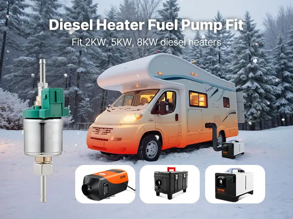 Wide Compatibility: This diesel heater fuel pump fits most 2KW/5KW/8KW air diesel heaters on the market. It's a reliable replacement option to keep your system running smoothly. Be sure to confirm your heater model before purchasing