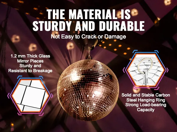 With thick glass mirrors and a strong carbon steel hanging ring, this disco ball is tough, durable, and ready to shine for a long time.