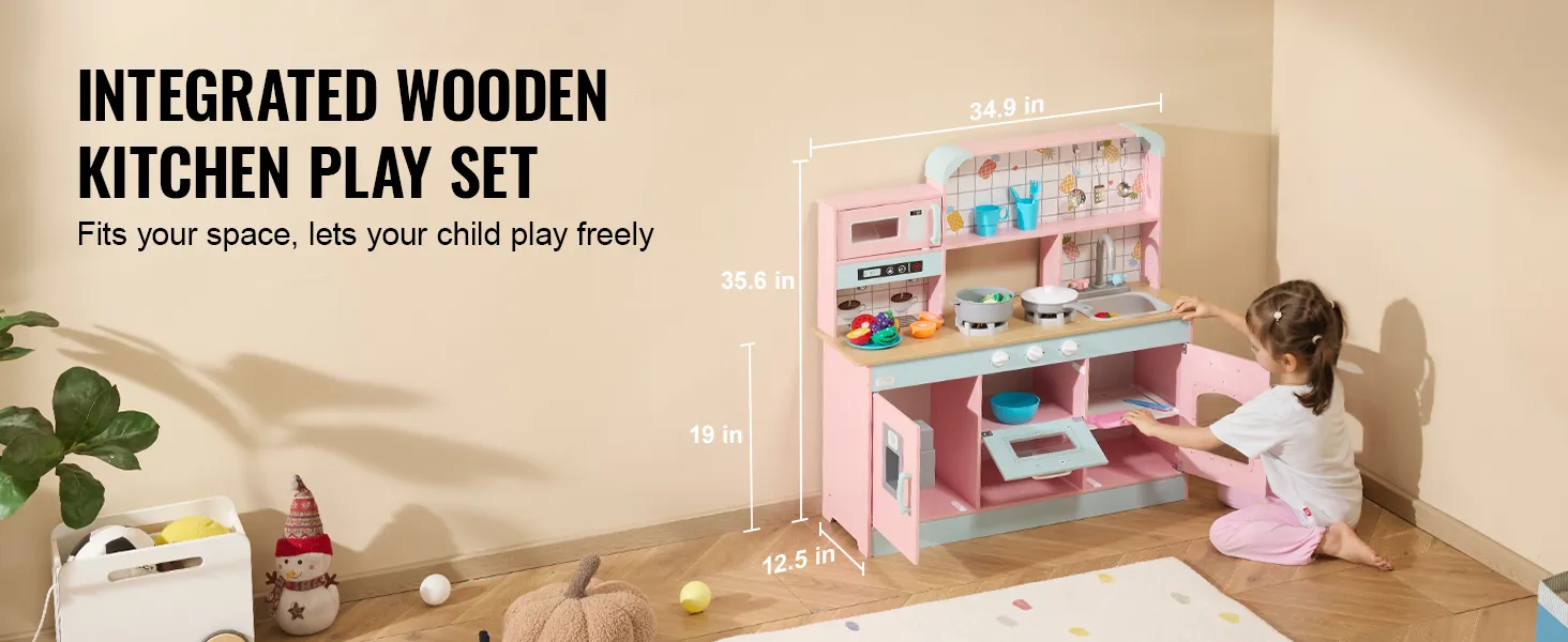 Easy to Assemble & Built to Last: This toy kitchen set is built to endure and comes with clear, simple instructions for quick assembly. Enjoy a durable toy that provides lasting playtime enjoyment! Measuring 34.9" x 12.5" x 35.6" with the 18.8" counter height, it's just right for little chefs to comfortably cook and play.