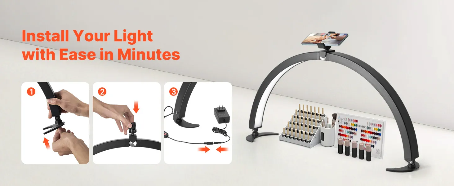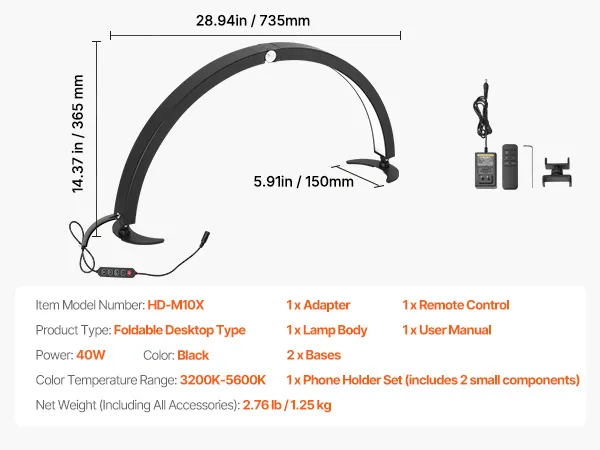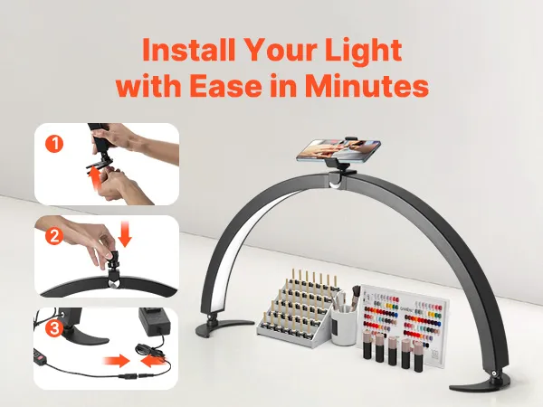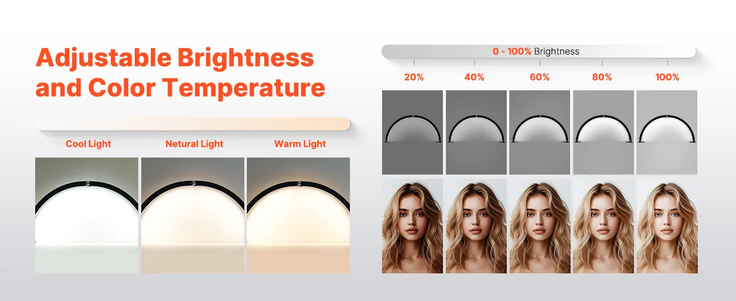 Stabiel en duurzaam: de standaard van de halvemaanlamp is gemaakt van een hoogwaardige aluminiumlegering, waardoor deze licht en gemakkelijk te verplaatsen is. Het is ontworpen om bestand te zijn tegen zware omstandigheden en bestand te zijn tegen krassen, deuken en andere vormen van slijtage.