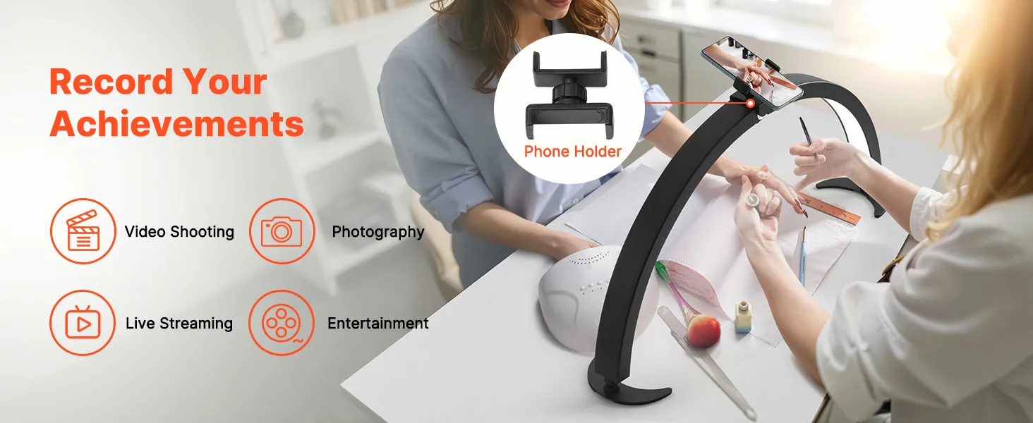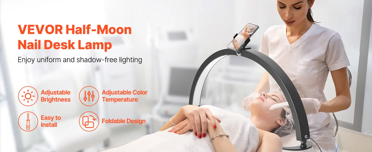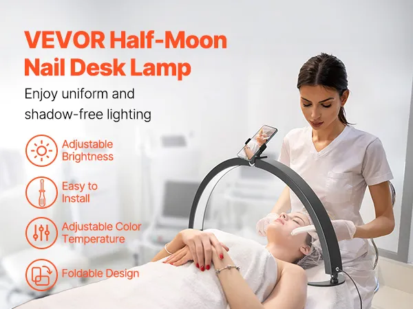 VEVOR Bureaulamp met halve maan voor nagels met telefoonhouder (40W, 735 mm lang) Nageltechnieklamp, nageltafellamp met verstelbare helderheid, LED-tafellamp voor nagelstyliste Wimperverlenging
