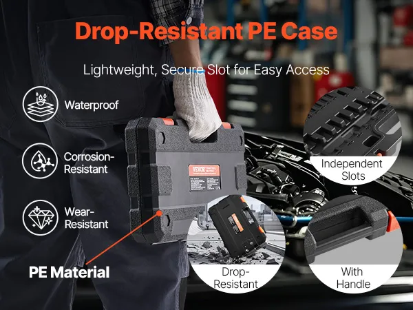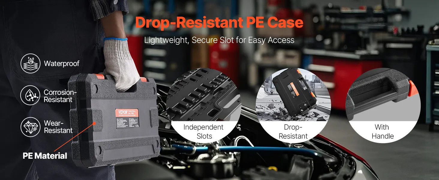No more worries about accidental drops or scattered tools. The sturdy PE storage case features secure slots for each bit socket, keeping them firmly in place to avoid loss or damage. Its compact design ensures easy portability and convenient storage at home or on the go.