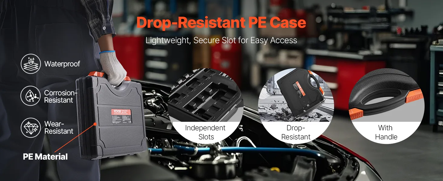 No more worries about accidental drops or scattered tools. The sturdy PE storage case features secure slots for each bit socket, keeping them firmly in place to avoid loss or damage. Its compact design ensures easy portability and convenient storage at home or on the go.