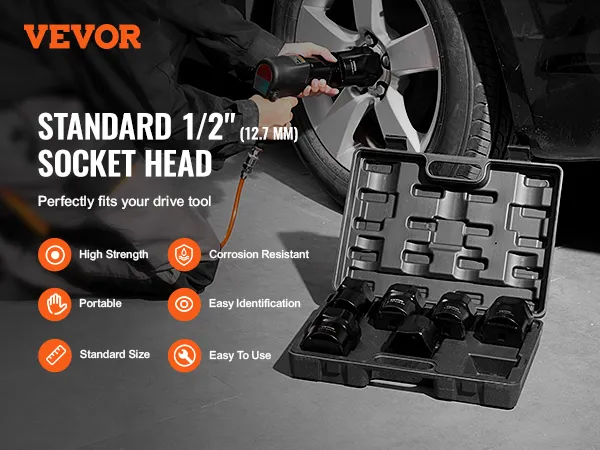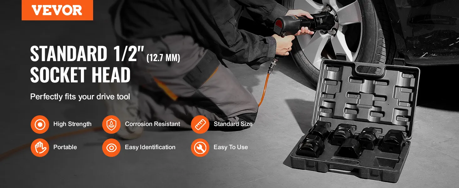 Brede toepassing: deze zeshoekige slagmoersleutelset is ideaal voor het onderhoud van bestelwagens, auto's, vrachtwagens en SUV's, waardoor u onderdelen efficiënt kunt vervangen, waardoor voertuigpech en veiligheidsrisico's worden verminderd. Het is ook perfect voor eigenaren van aangepaste auto's die hun voertuig willen upgraden.
