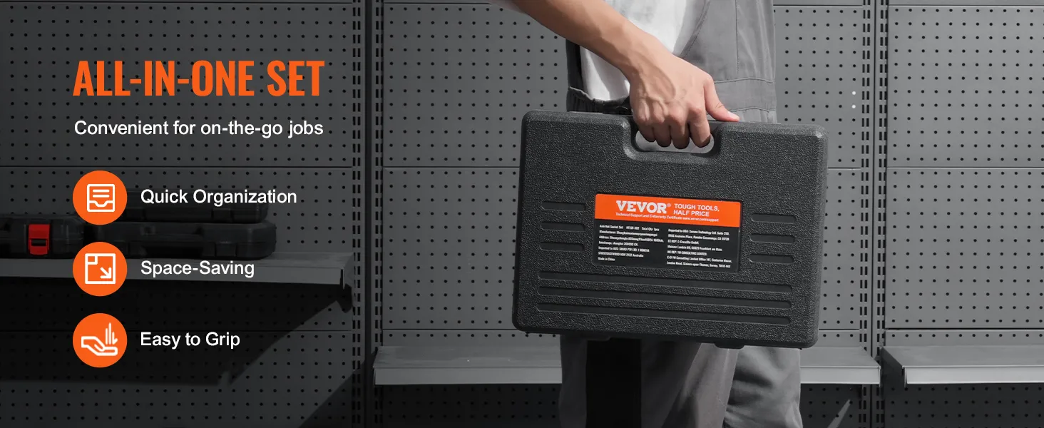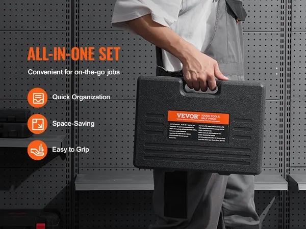Draagbare opbergkoffer: alle borgmoeraansluitingen zijn opgeborgen in een handige draagtas, waardoor ze gemakkelijk te organiseren en te vervoeren zijn. Het luchtdichte ontwerp zorgt ervoor dat je gereedschap droog en schoon blijft, en het ingebouwde handvat zorgt voor gemakkelijk transport.