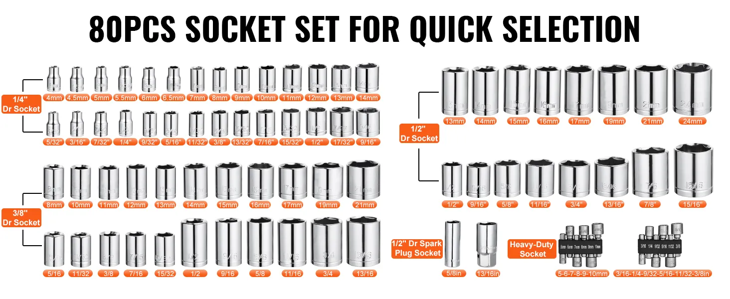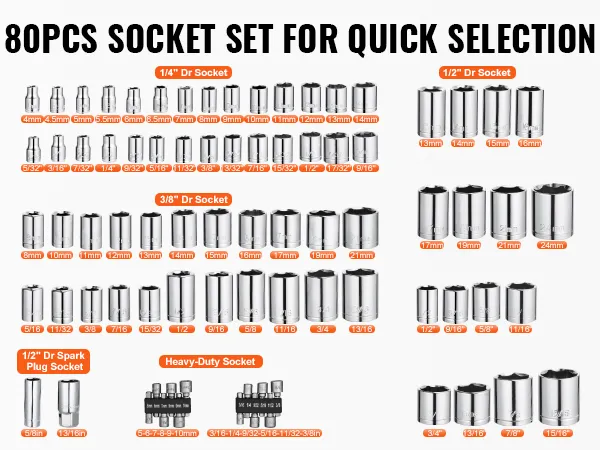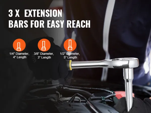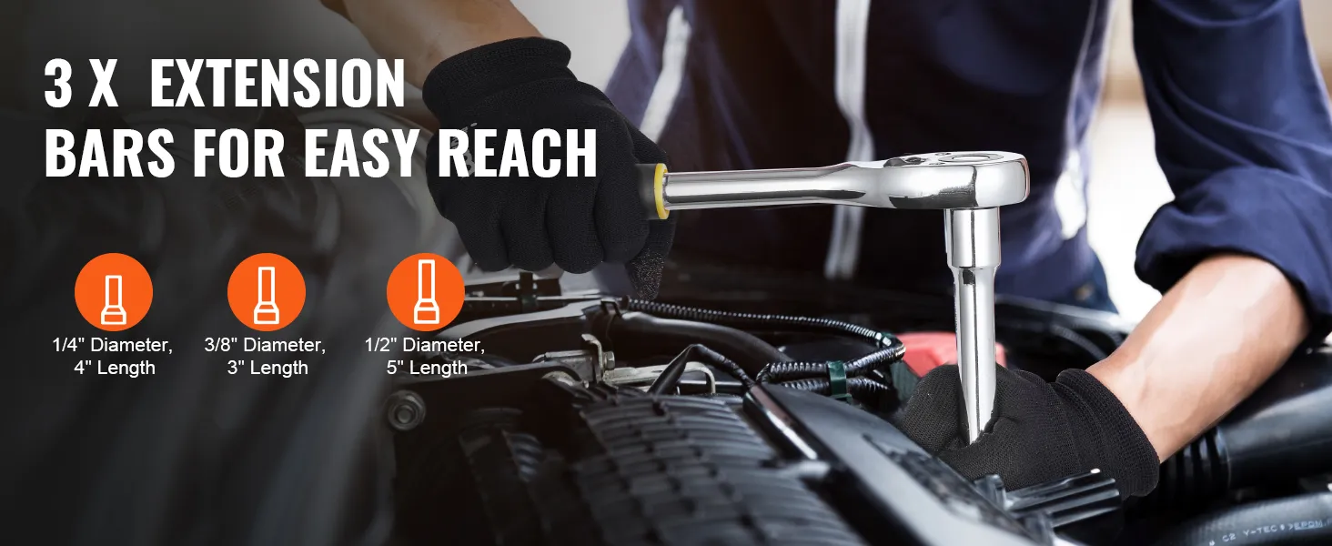 Professional Ratchet Handle: Our mechanic tool set features a handle with a quick-release button for easy socket changes. The reversible design makes tightening and loosening bolts effortless, saving you time and energy. The 72-tooth ratchet ensures smooth and efficient operation.