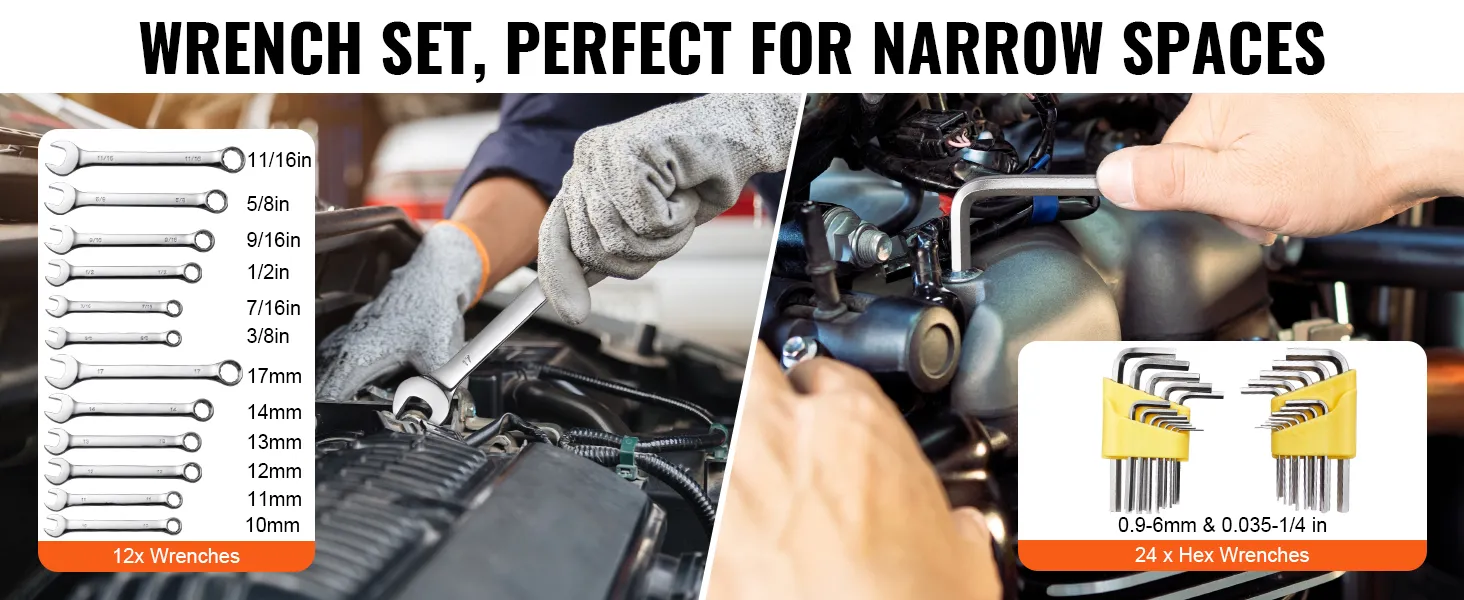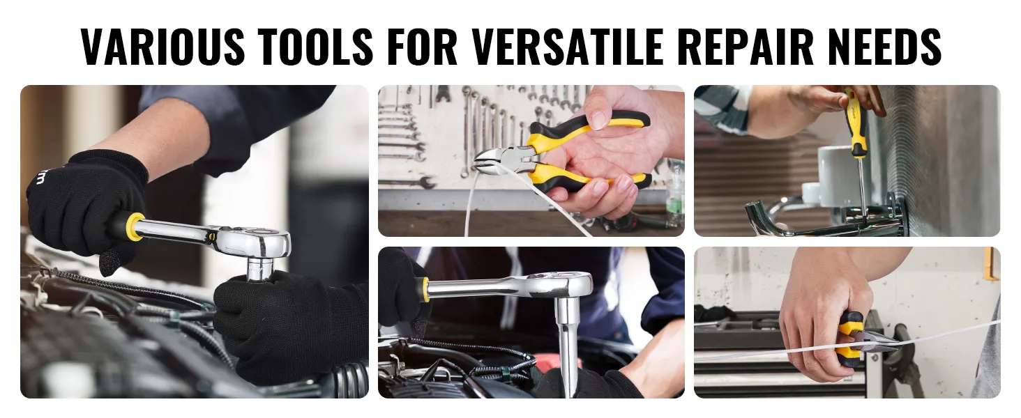 Wide Application: Our tool set mechanics kit is ideal for professional automotive repairs, machine maintenance, and vehicle upkeep. It's also perfect for home use, garages, or DIY projects. With its versatile applications and high-quality construction, it's an essential tool set for anyone who needs reliable tools.