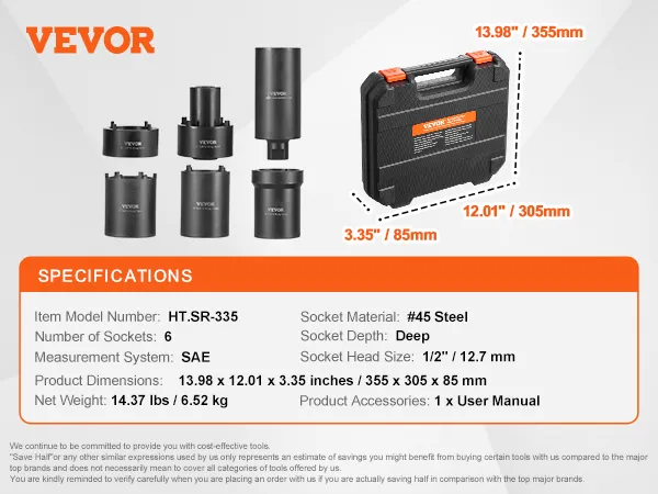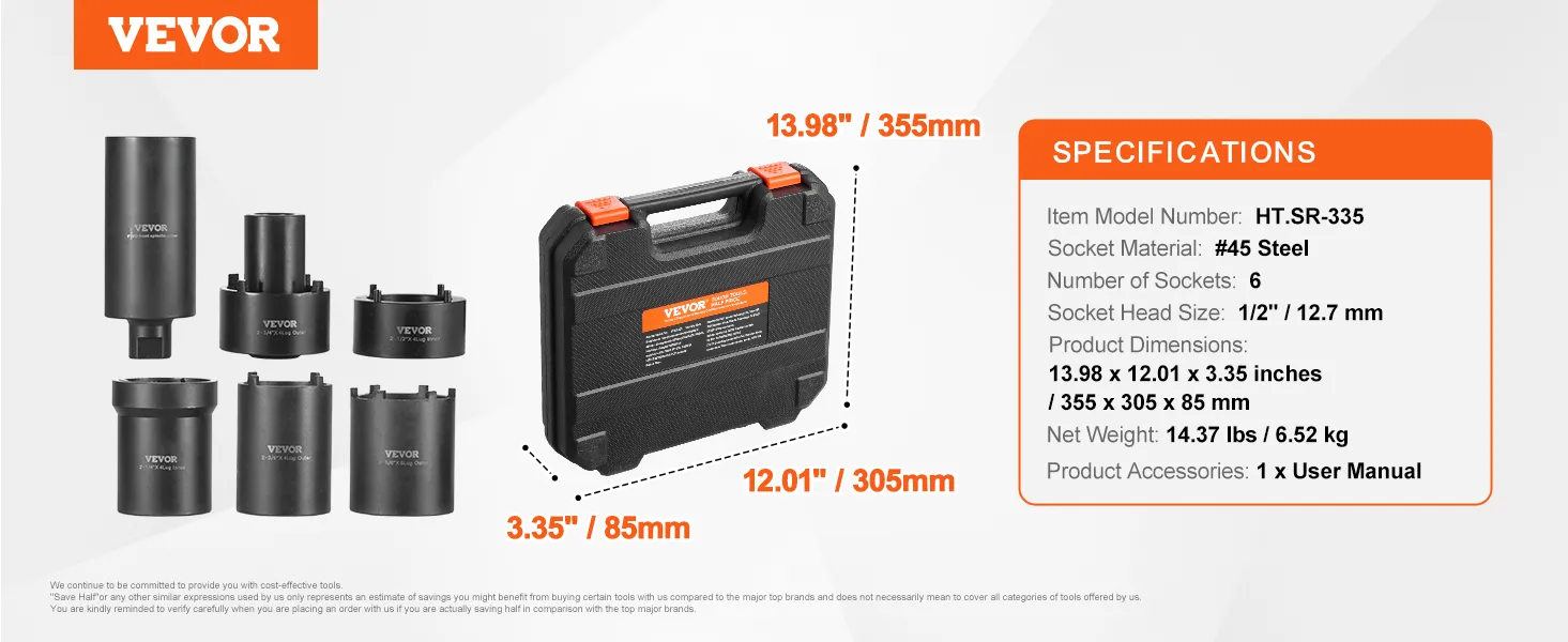VEVOR Spindle Nut Socket Tool Kit, 1/2 inch Drive 6 Piece Axle Hub Nut Socket Set, for Toyota, Ford, 4WD Vehicles and GM Vehicles, with Storage Case, Axle Spindle Nut Retainers Remover VEVOR Spindle Nut Socket Tool Kit, 1/2 inch Drive 6 Piece Axle Hub Nut Socket Set, for Toyota, Ford, 4WD Vehicles and GM Vehicles, with Storage Case, Axle Spindle Nut Retainers Remover