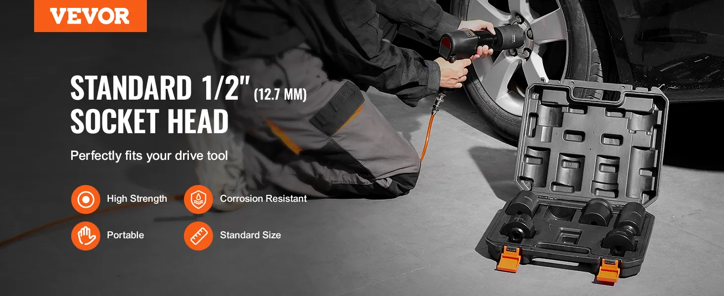 VEVOR Spindle Nut Socket Tool Kit 1/2 inch Drive 6 Piece