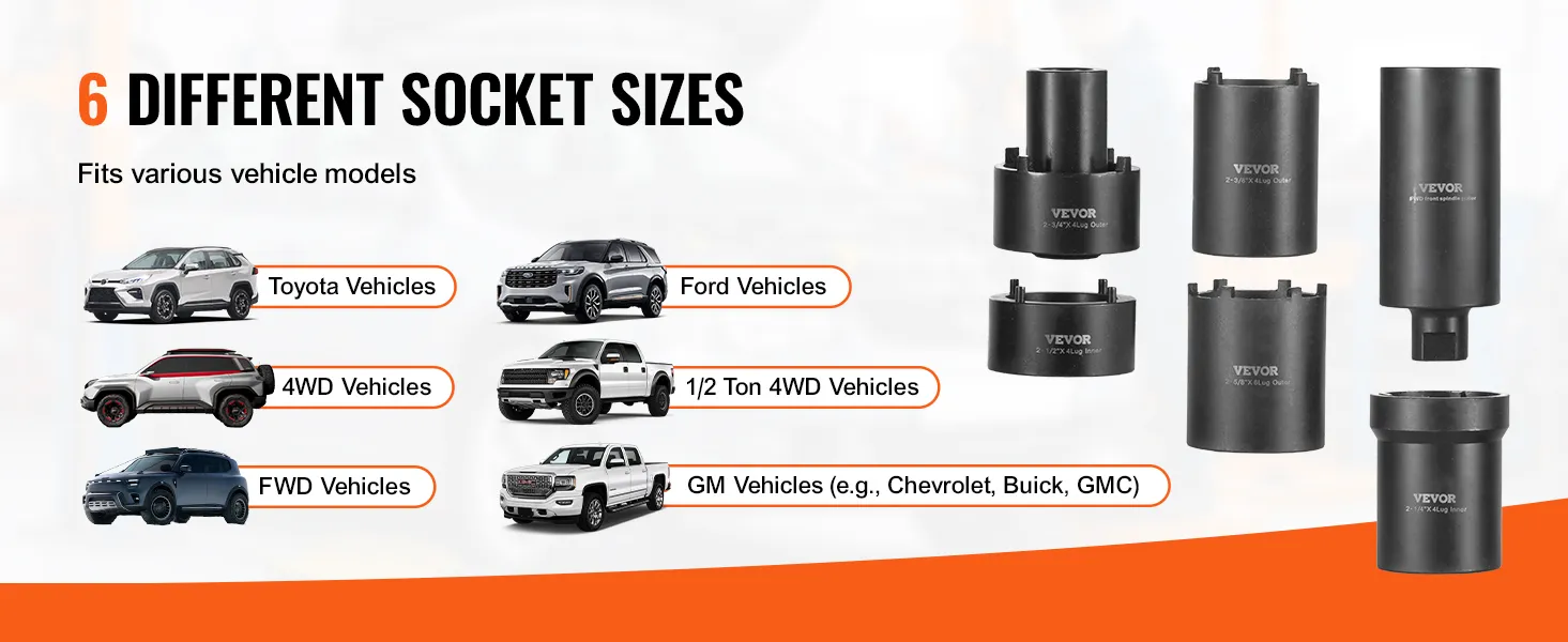 • Fits Various Vehicles: Our axle nut socket set is suitable for Toyota, Ford, 4WD vehicles, GM cars like Chevrolet, Buick, GMC, half-ton 4WD trucks, and front-wheel-drive cars.