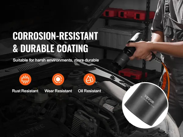 • Impact-Resistant & Corrosion-Resistant: Made from heat-treated CR-MO steel, the impact socket set withstands high torque from impact tools. The blackened surface treatment enhances corrosion resistance, making them rust-proof, oil-resistant, dirt-resistant, and highly durable for long-term use in auto repair.