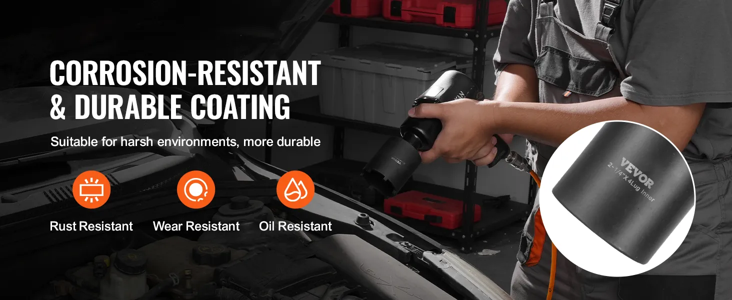 Each axle nut socket has a blackened finish that enhances corrosion resistance and durability. They are rust-proof, oil-resistant, and dirt-resistant, making them highly durable for long-term use in garages and vehicle repair environments.