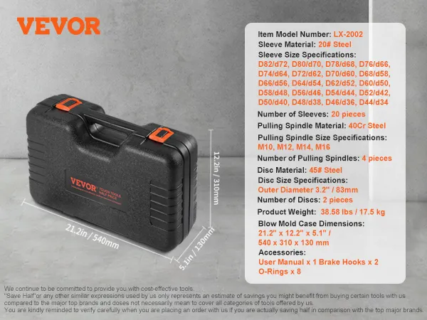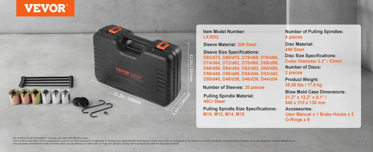 20 Sizes Available: Our bushing press and pull kit provides 20 different sleeve sizes to meet various repair needs, with a design focused on easy operation, ensuring a convenient and efficient disassembly process.
