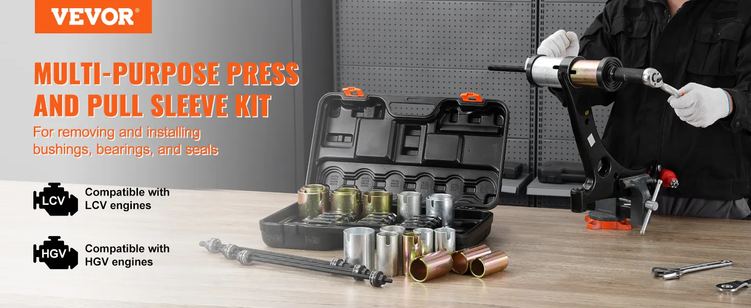 Wide Compatibility: The press and pull sleeve kit is compatible with a variety of engines in cars, light commercial vehicles (LCV), and heavy goods vehicles (HGV). It's specifically designed for removing and installing bushings, bearings, and seals, minimizing the risk of damage to bearings or suspension housings.