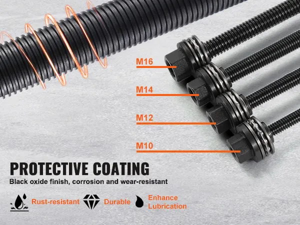 The pulling spindles feature a black oxide protective coating that resists corrosion, wear, and rust, extending the tool's lifespan. This also enhances lubrication, reduces friction, and improves efficiency, ensuring the pulling spindles operate smoothly and reliably.