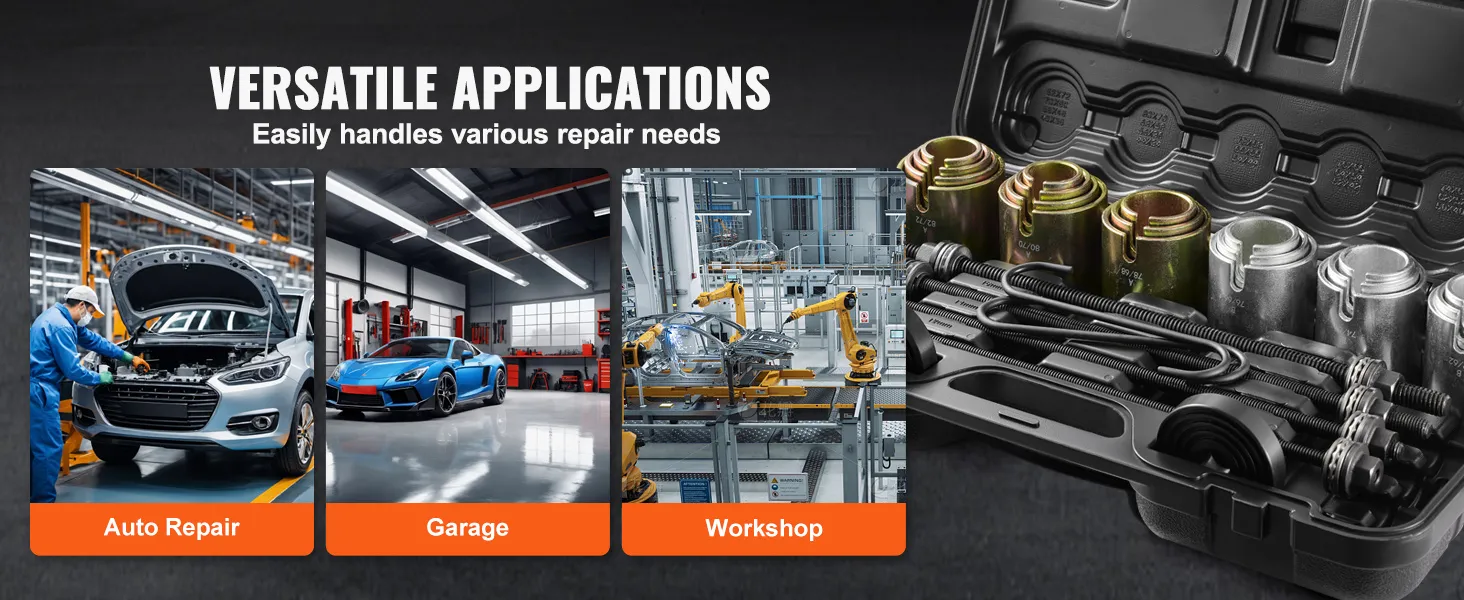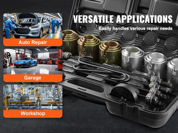 The press and pull kit is widely used in automotive repair, garages, and mechanical workshops, effortlessly addressing various maintenance challenges and enhancing work efficiency.