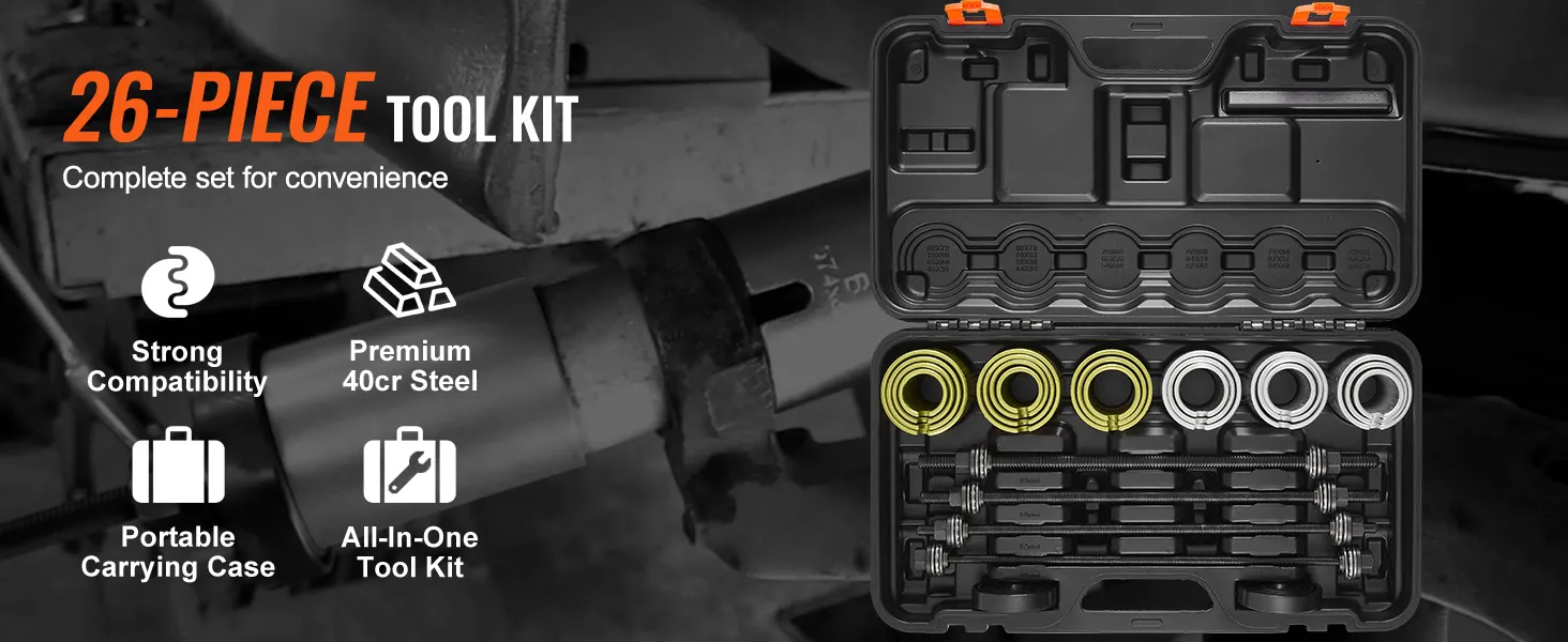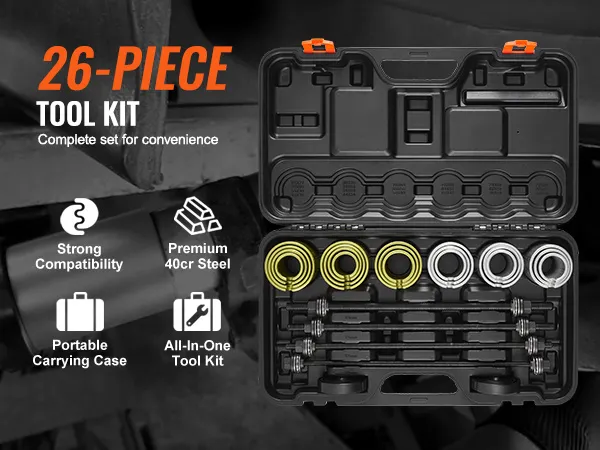 This 26-piece press and pull kit is comprehensive and highly compatible, seamlessly integrating with your equipment systems to save time and improve efficiency. Made from high-quality 40CR steel, it ensures durability and stability, preventing damage.
