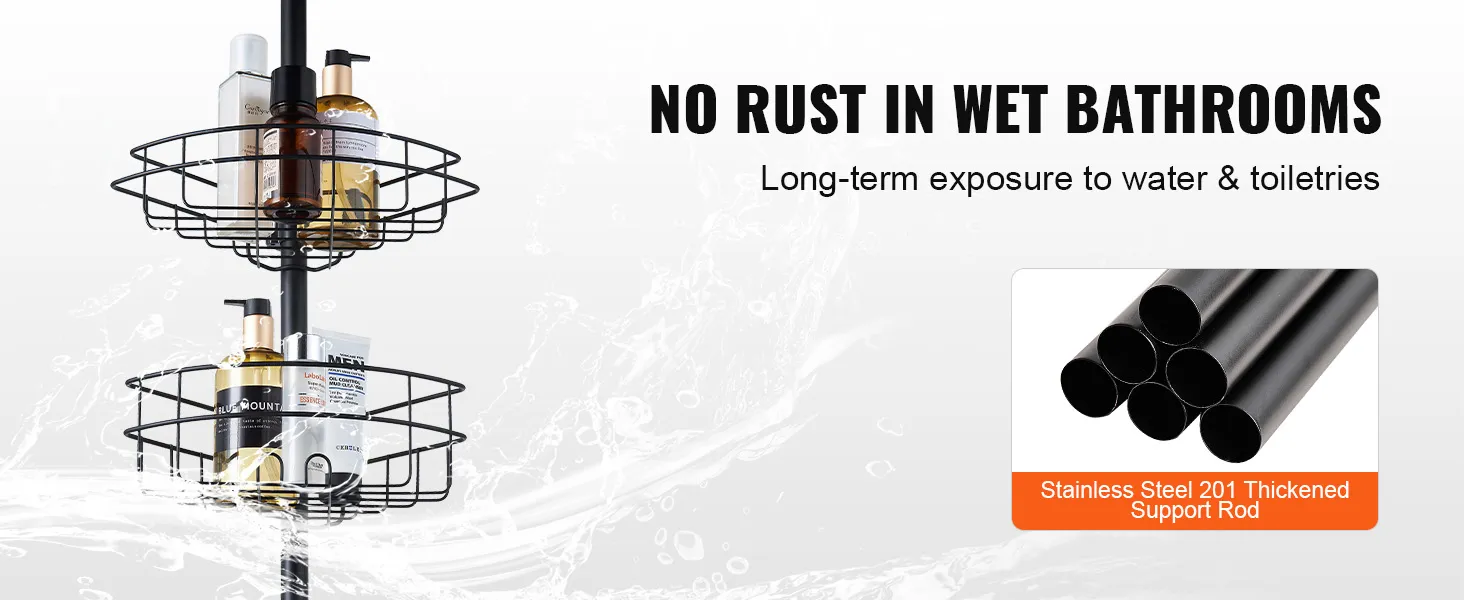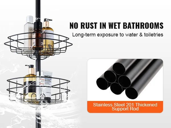 The shower corner caddy tension pole’s bathroom organizer is made of high quality stainless steel, which is corrosion-resistance and sturdy. Even if it is immersed in water for a long period of time or in frequent contact with toiletries, it is still as good as new.