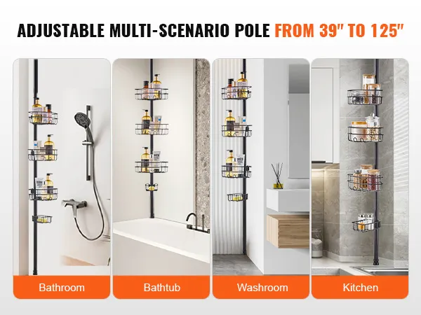 De spanstang kan worden aangepast aan de werkelijke hoogte van uw badkamer, of het nu een hoogbouwappartement of een laagbouwwoning betreft. De aparte organizer kan niet alleen in de badkamer worden geplaatst, maar ook in de badkuip, camper, etc.