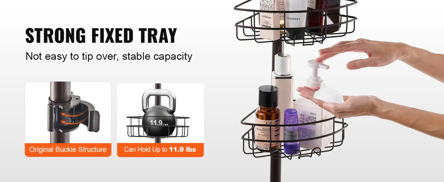 Het innovatieve ontwerp zorgt ervoor dat de plank stabiel staat en niet wegglijdt. Het hoge draagvermogen van 5,4 kg minimaliseert effectief het uitglijden of wiebelen tijdens het gebruik van de douchestang, waardoor gebruikers een veilige en stabiele gebruikerservaring krijgen.