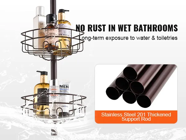 VEVOR Spanstang voor hoekdoucheplank 991-3175 mm hoog, multifunctionele spanstang voor de douche met sterke en dragende plank Spanstang voor badkamerruimtes Brons 3 lagen