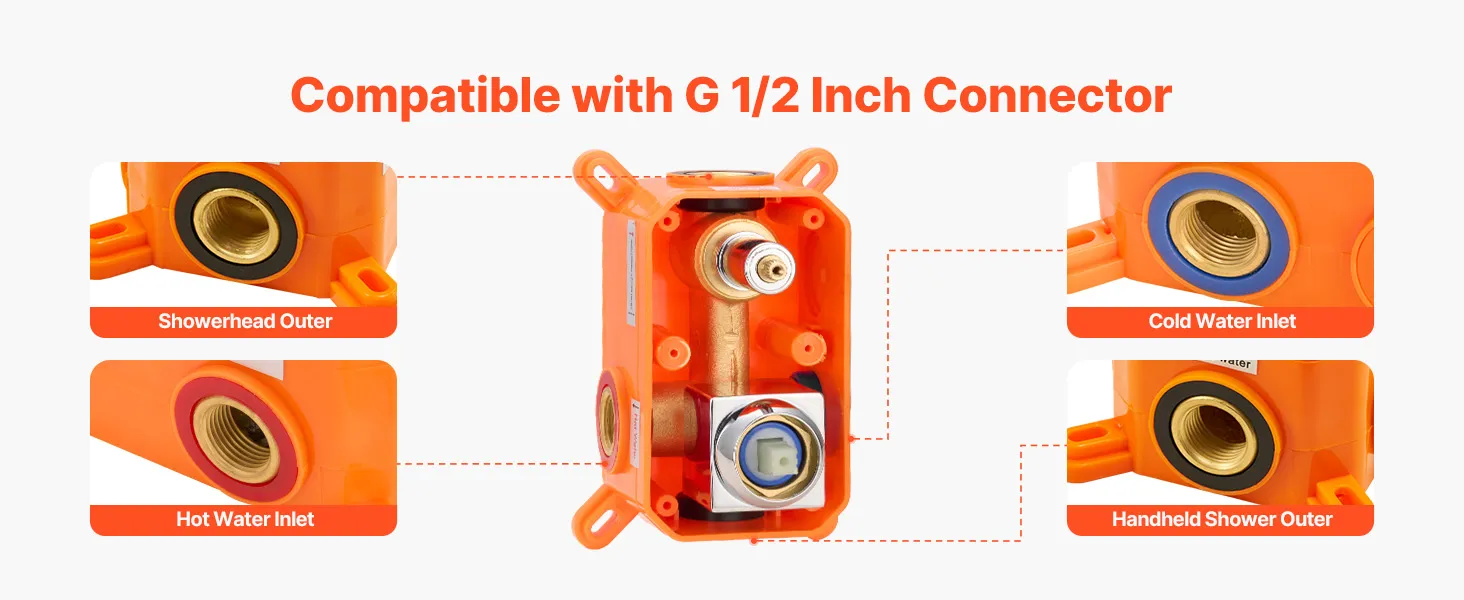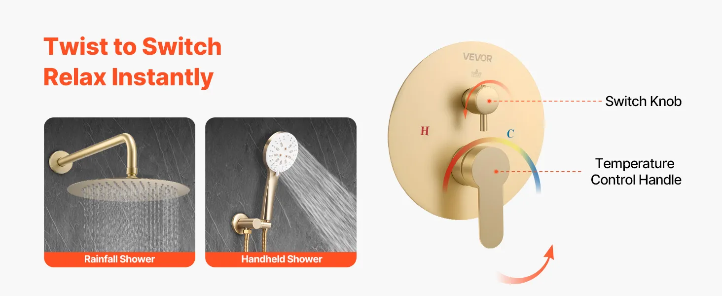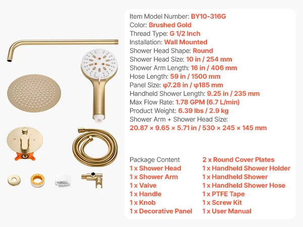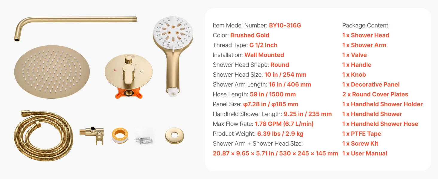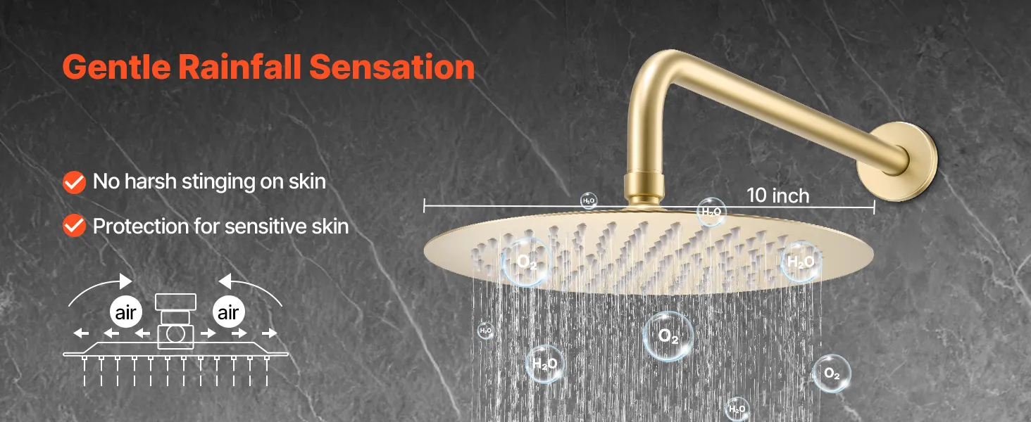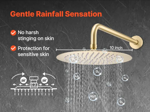 Gelijkmatige waterverdeling: De douchearm van 40,6 cm (16 inch) zorgt voor een betere waterverdeling en een zachte, gelijkmatige regenval. De 360° draaibare douchekop is geschikt voor verschillende hoeken en de G 1/2 inch aansluiting vereist geen extra onderdelen voor eenvoudige installatie.