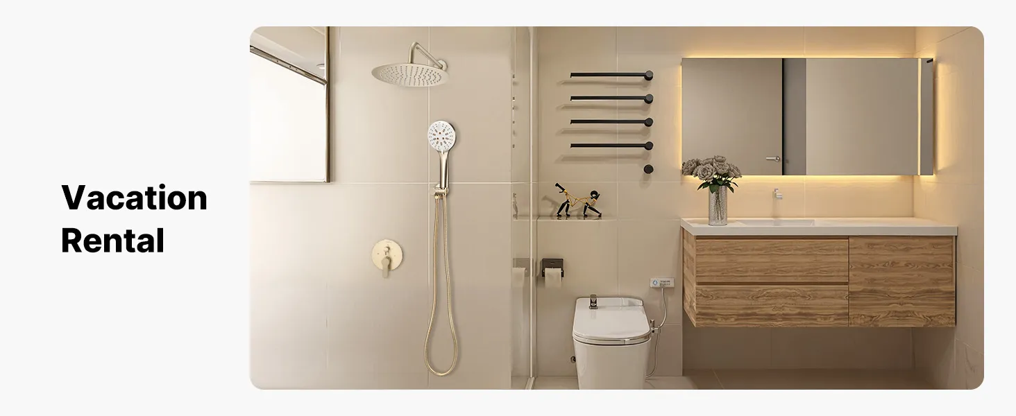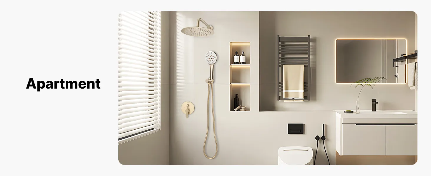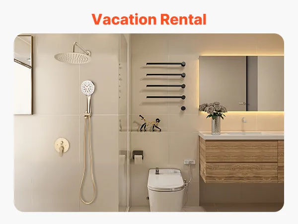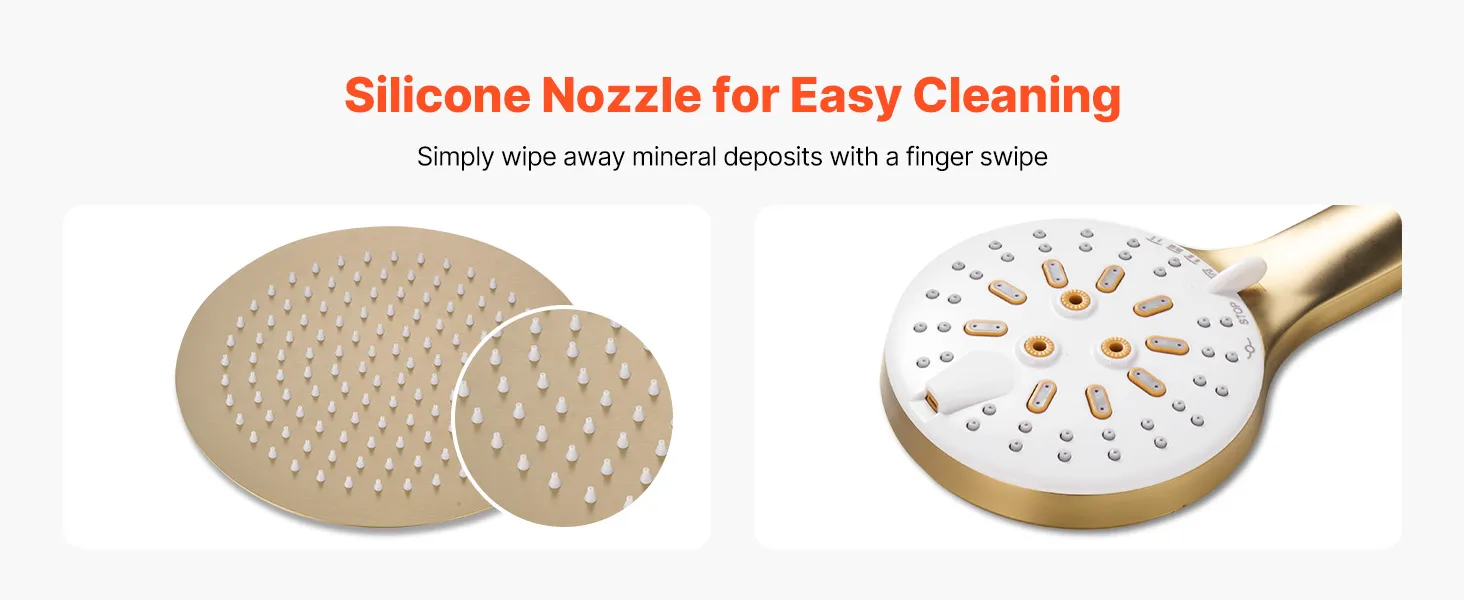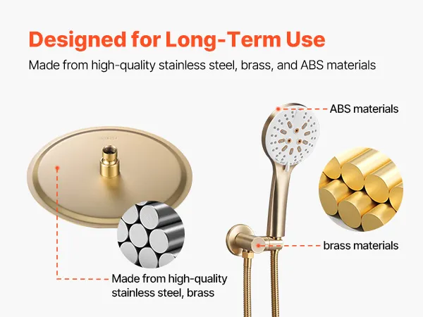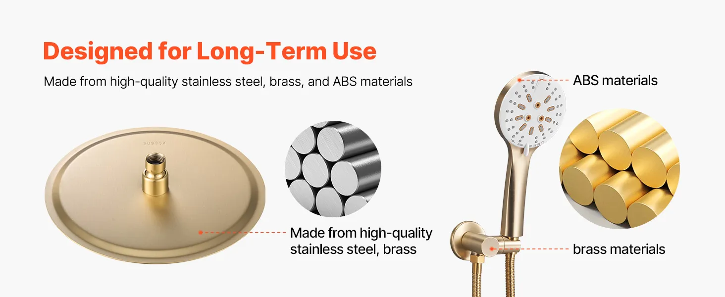 Robuuste constructie: Deze douchekraanset, gemaakt van duurzaam roestvrij staal, messing, zinklegering en ABS, is bestand tegen vingerafdrukken en watervlekken. Hij is gemakkelijk schoon te maken en geeft elke badkamer een elegante touch – perfect voor appartementen, hotels en pensions.
