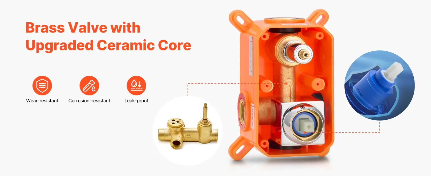 Eenvoudige temperatuurregeling en bescherming tegen verbranding: de hoogwaardige messing mengkraan zorgt voor een snelle en gelijkmatige temperatuurregeling en voorkomt verbranding. Het keramische ventielinzetstuk garandeert een lange levensduur en voorkomt lekkage of schade na verloop van tijd.