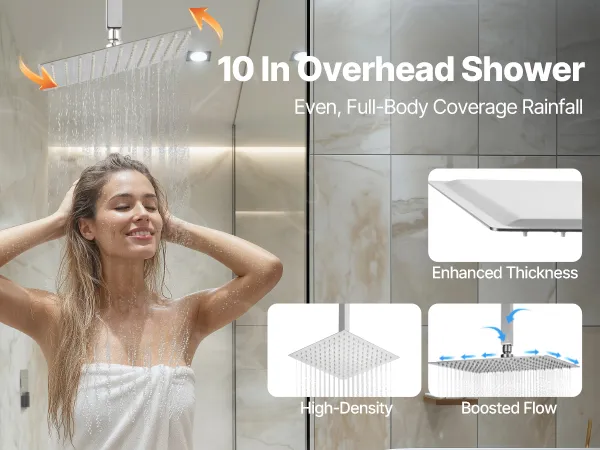 Regendouche: Dit regendouchesysteem is voorzien van een verstelbare hoofddouche. De mix van lucht en water creëert een vol, natuurlijk regeneffect. Het formaat van 25 x 25 cm concentreert de dekking op uw hoofd en schouders voor een ontspannende ervaring.