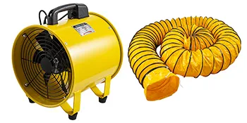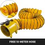 Een ventilatorslang van 10 meter van vlamvertragend PVC-materiaal is gratis verkrijgbaar bij deze cilinderventilator.
