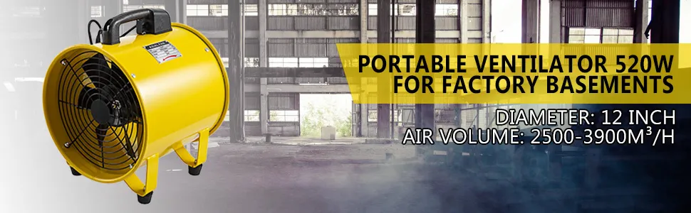Deze draagbare ventilator van 12 inch is de ideale ventilator voor ruimtes met beperkte toegang in kruipruimtes, zolders en kelders. Het beschikt over een volledig gesloten koperen motor. Gemaakt van stevig staal, compact met een luchtvolume van 2500-3900m3/h, draagbaar met één handvat, gemakkelijk te dragen en te dragen.