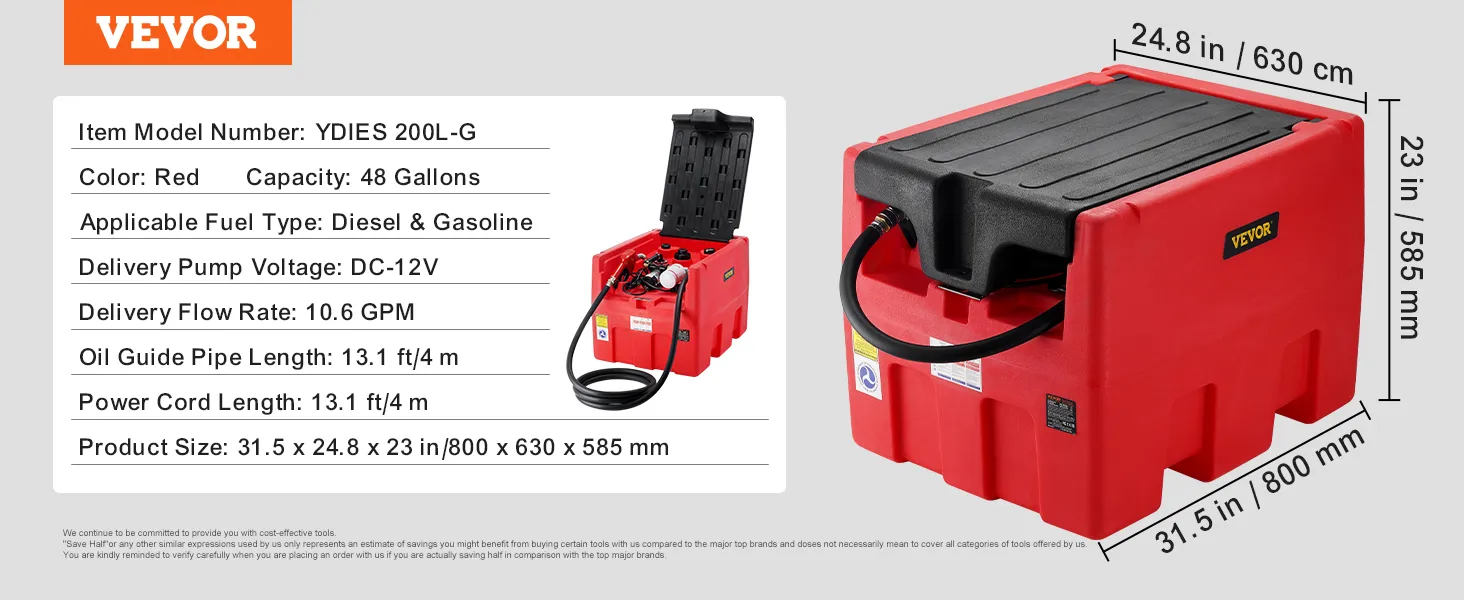 VEVOR Portable Diesel & Gasoline Tank – Fuel Up, Move On