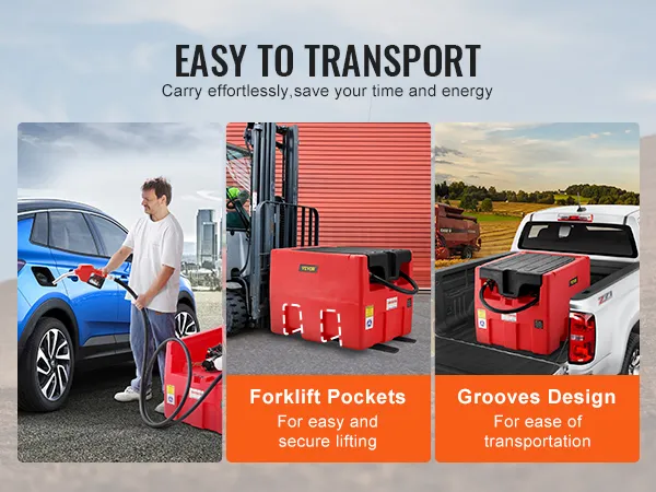 Transport Diesel/Gasoline with Ease: With grooved sides and forklift pockets, this portable fuel tank stays secure on your vehicle. Whether you need diesel or gasoline, this tank's versatile design has you covered, giving you more options and control over fuel costs. Perfect for trucks, tractors, ships, RVs, and all your outdoor or construction needs. Start up your engine and get ready to work!