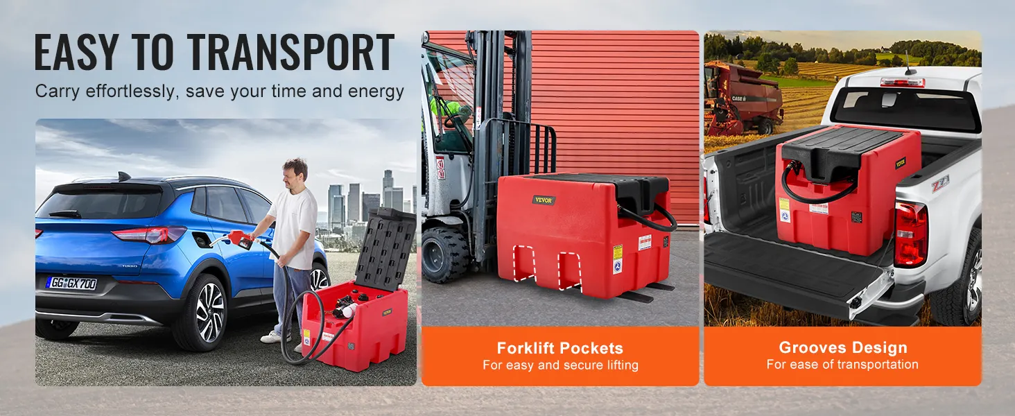 Whether you're running diesel or gasoline, this fuel transfer tank's dual compatibility gives you more choices without breaking the bank. Designed for flexibility, it's perfect for trucks, tractors, ships, RVs, and whatever else keeps you moving.