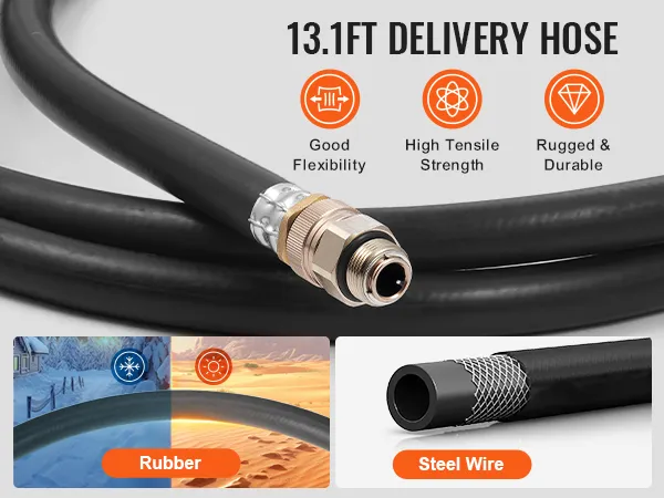 Our portable fuel tank's delivery hose is composed of a rubber hose and inlaid with steel wire. The characteristics of high support and excellent flexibility make it not easy to soften and break. Ensuring the oil can be conveyed smoothly and efficiently.