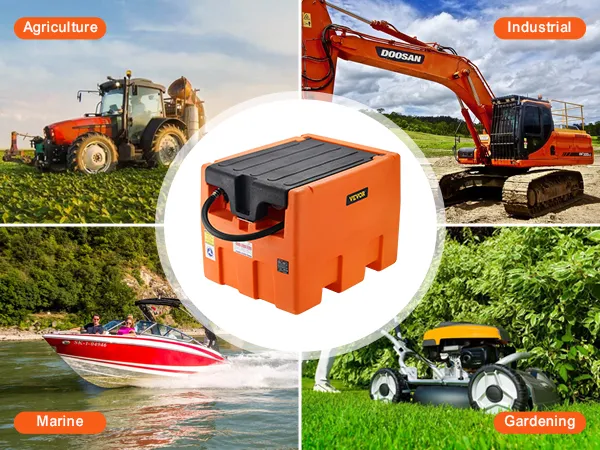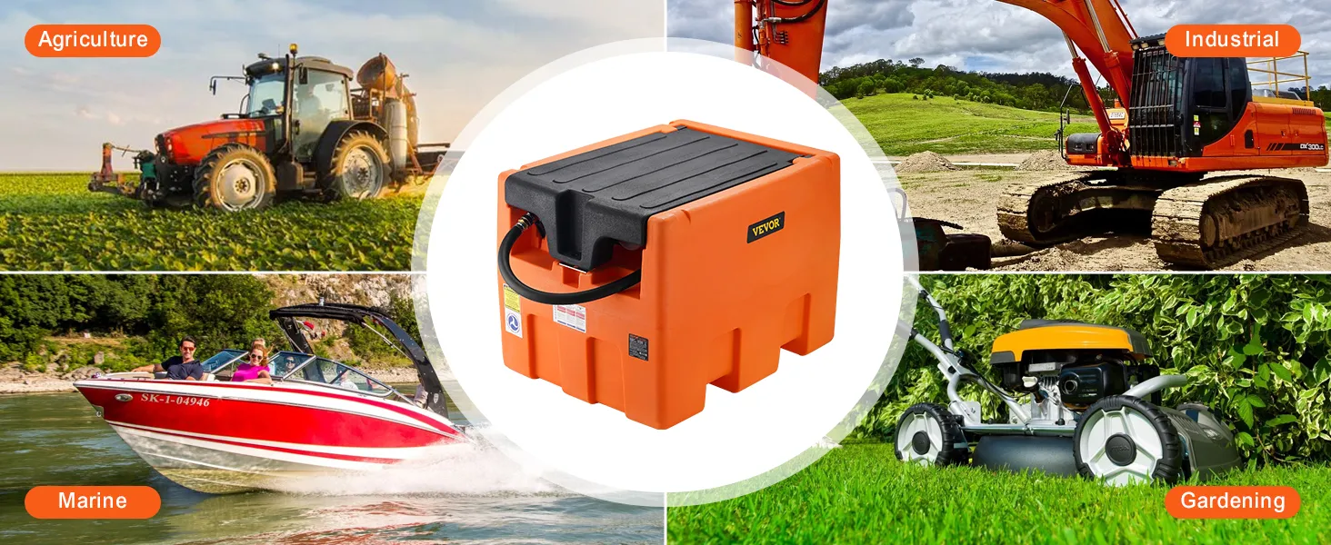 Transport with Ease: The two grooves make this portable fuel tank easy and secure to transport. The integrated forklift pocket design ensures stable lifting onto a vehicle. Thanks to these wonderful designs, our diesel tank is widely used in trucks, tractors, ships, motorhomes, outdoor industries, construction industries, etc. Start up your engine and get ready to work!