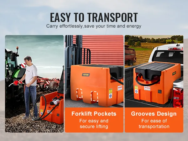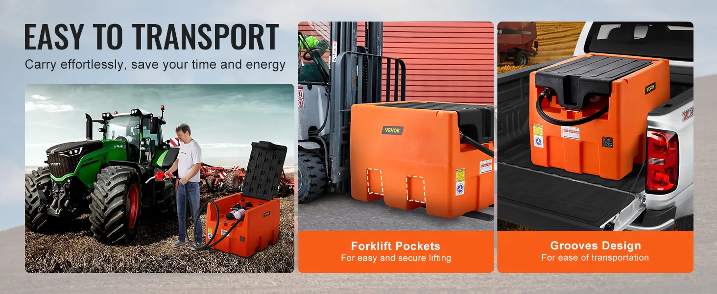 Comes with 2 grooves and forklift pockets for easy and safe movement of the diesel tank. The integrated forklift pocket design moves when the tank is full, and convenient grooves for easy lifting.