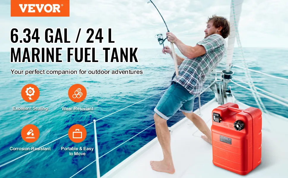 Deze brandstoftank voor buitenboordmotoren biedt een verbeterde brandstofcapaciteit. Hij heeft een capaciteit van 6,34 gallons, of 24 liter. Door uw brandstofcapaciteit te vergroten, kunt u langere tochten maken zonder te tanken. Dit is perfect voor degenen die van uitgebreide bootavonturen houden. De tank helpt de noodzaak voor frequente tankstops te verminderen. Dat maakt uw tochten aangenamer en efficiënter. U kunt meer afstand afleggen met minder zorgen over het opraken van brandstof. Onze tank is geweldig voor zowel korte als lange tochten. Hij zorgt er dus voor dat u voldoende brandstof hebt voor uw activiteiten. Daarom is het een betrouwbare keuze voor elke schipper.