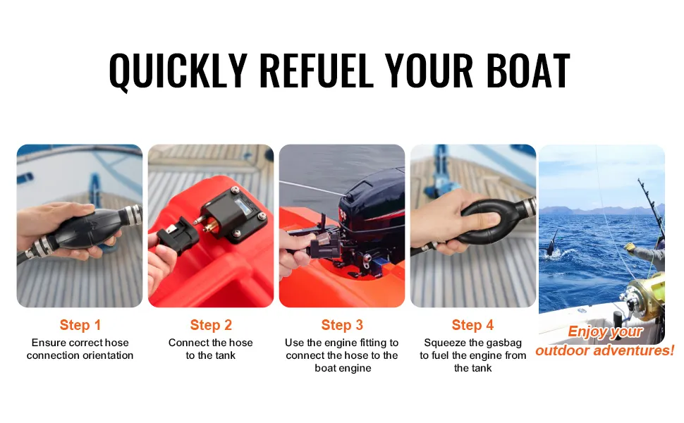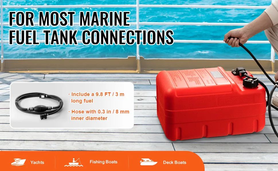 De VEVOR marine brandstoftank is compatibel met verschillende brandstofleidingsystemen. Het bevat een slang voor eenvoudige aansluiting. U kunt de fitting voor uw specifieke brandstofleidingen verwisselen. Deze flexibiliteit maakt het geschikt voor verschillende opstellingen. Of u nu het systeem moet primen of een VEVOR vacuüm aangedreven brandstofpomp moet gebruiken, het werkt goed. Het ontwerp van de plastic boot brandstoftank zorgt voor een soepele brandstofstroom. Dus uw boot vaart efficiënt. Het is in staat om veel brandstofleidingsystemen op te lossen. We kunnen het gebruiken zonder grote aanpassingen nodig te hebben. Deze compatibiliteit zorgt voor een probleemloze werking.