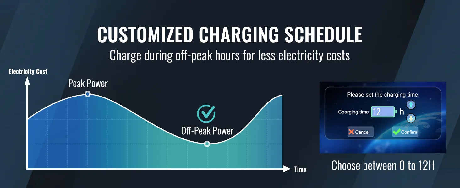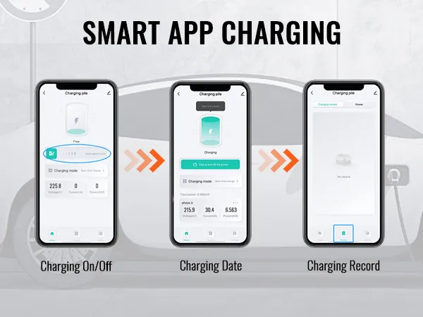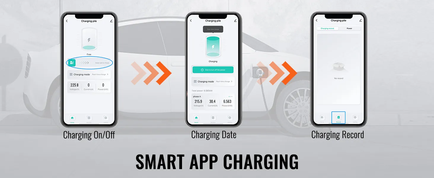 Real-Time Monitoring: This home vehicle charging station has a built-in intelligent App to directly monitor the charge status and power consumption. Designed with a 4.3-inch touchscreen to easily control the current / mode setting, order / password charging, changing password, and charging interface.