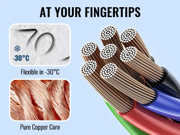 Q: What is the length of the charging cable? A: Charging Cable: 7.5 m / 24.6 ft(5*6㎟+1*0.5㎟, TPU). Input Cable: 1.5 m / 5 ft(5*6㎟, PVC).