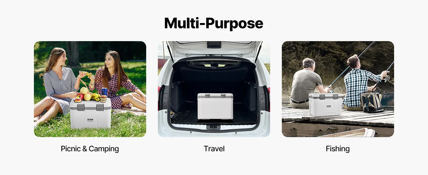 Multi-Purpose: This versatile cooler is ideal for outdoor activities like picnics, camping, travel, and fishing, keeping your food and drinks cool and fresh for extended periods.
