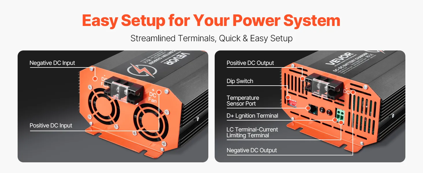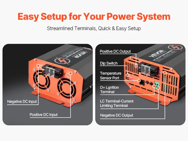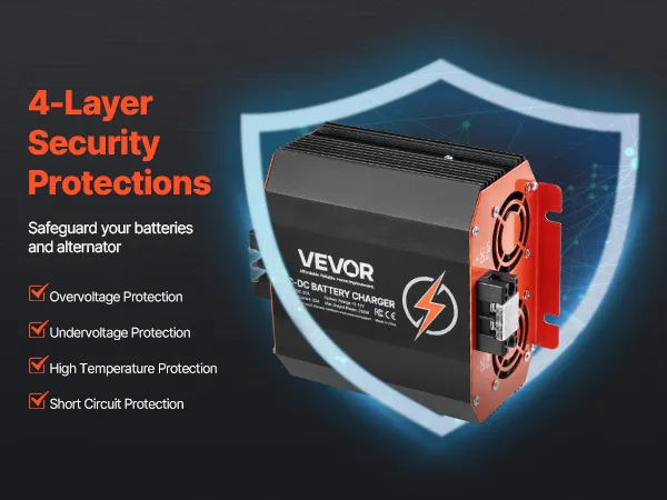 Multiple Protections: Built-in over & under voltage, high temperature, and reverse polarity protection ensure this on-board battery charger runs smoothly and securely. The isolated input/output keeps your vehicle's electrical system from interference