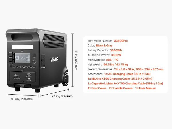 Large Power for Extended Use: VEVOR 3600W portable power station features a 3840Wh high-capacity LiFePO₄ battery. Ideal for home backup or outdoor adventures, it quickly powers your smartphones, lamps, cameras, fans, microwaves, mini-fridges, and more